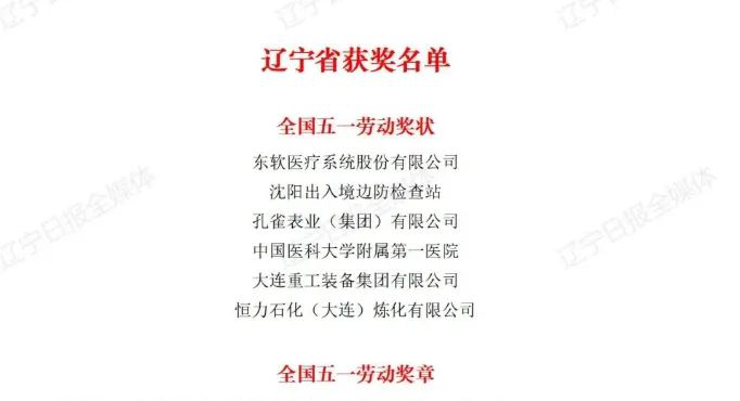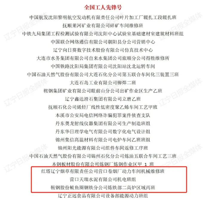 (图为获得全国五一劳动奖状、全国五一劳动奖章、全国工人先锋号的辽宁部分单位、职工和集体名单)