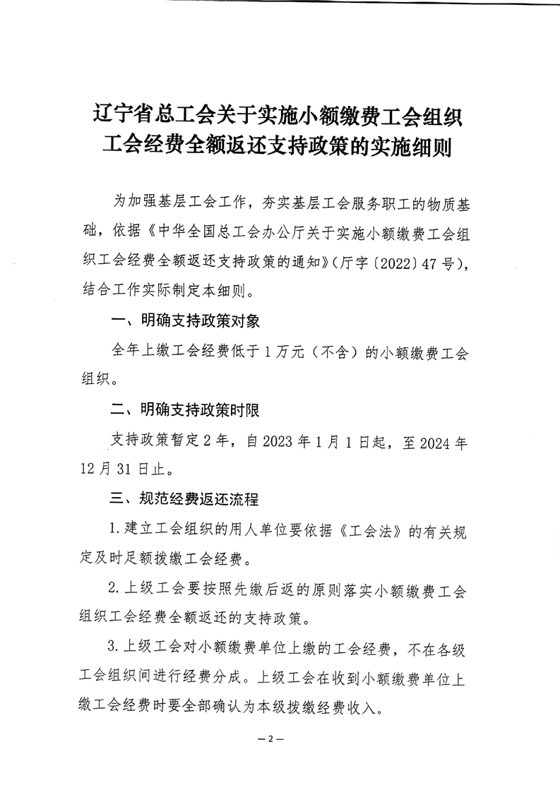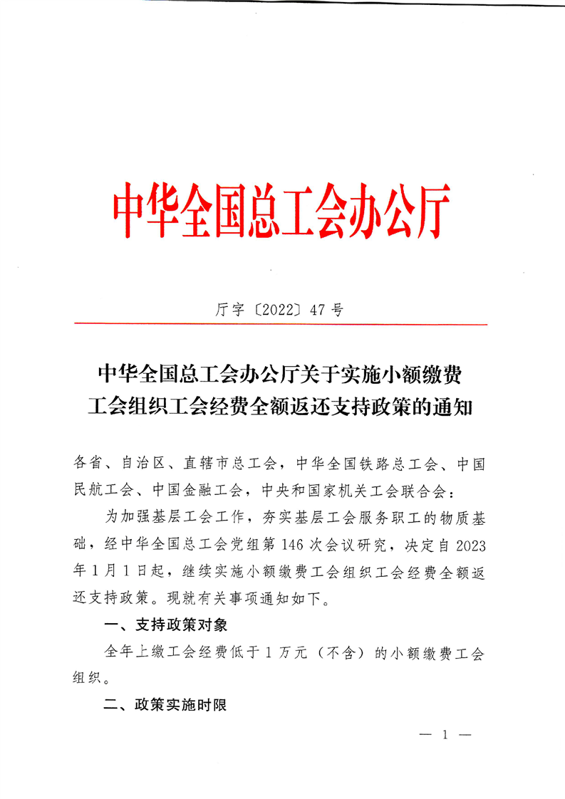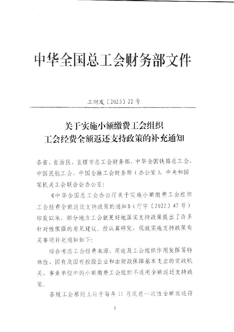 乐发vll关于实施小额缴费工会组织工会经费全额返还支持政策的通知