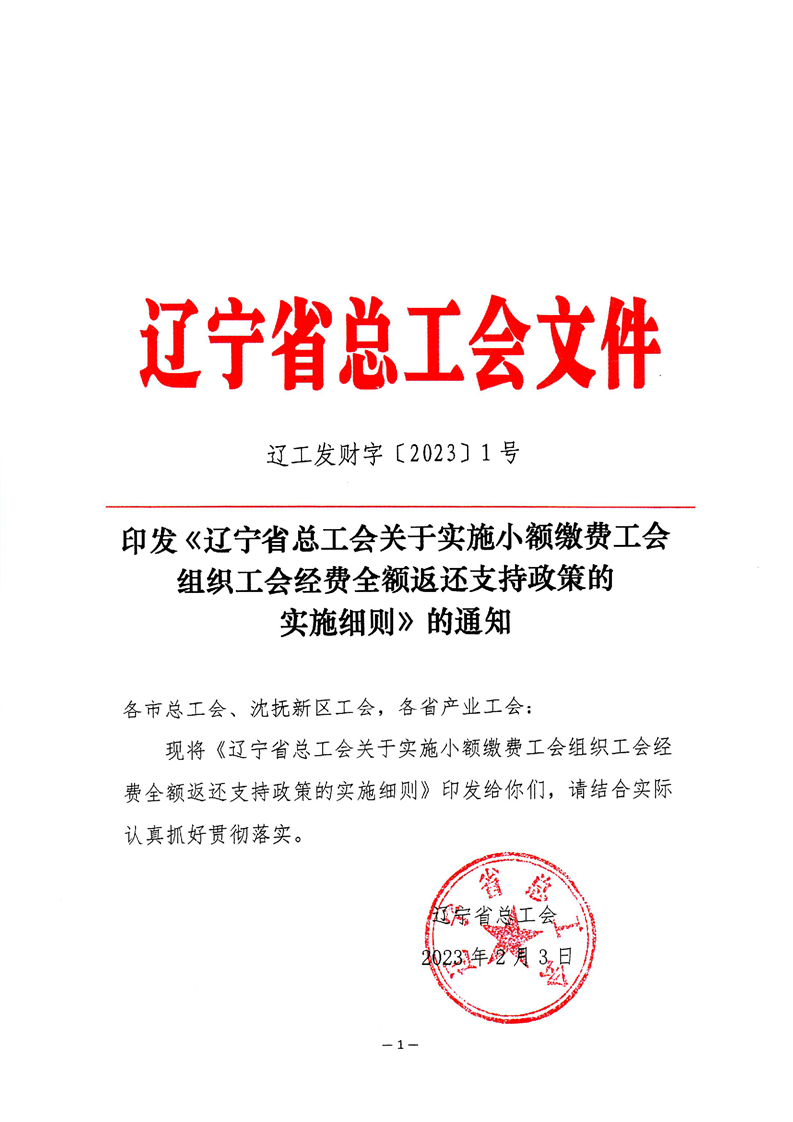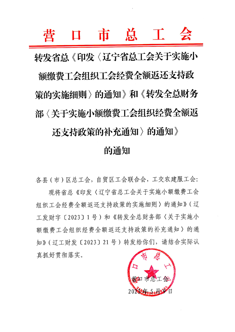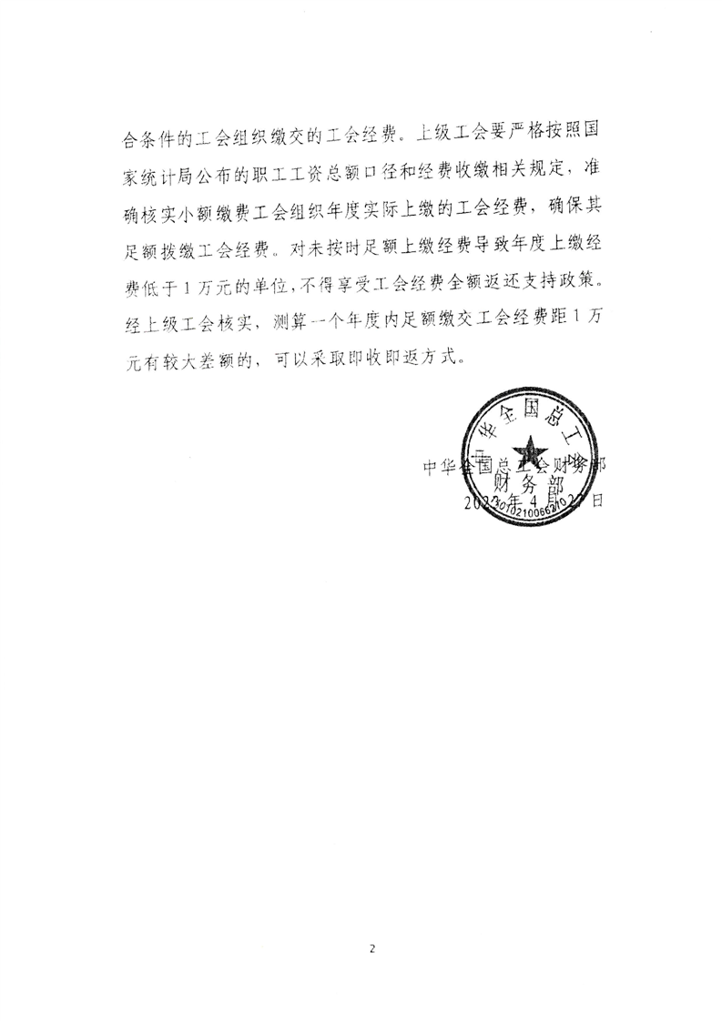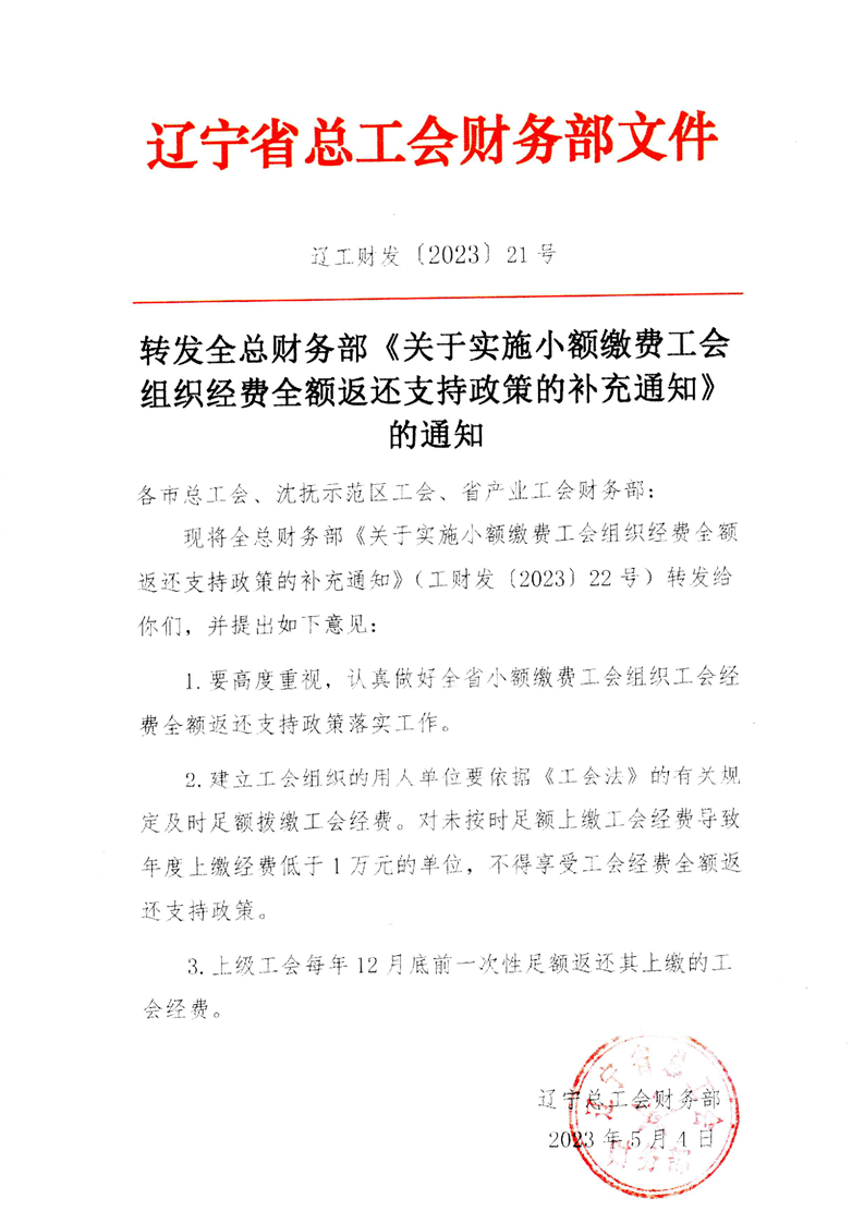 乐发vll关于实施小额缴费工会组织工会经费全额返还支持政策的通知